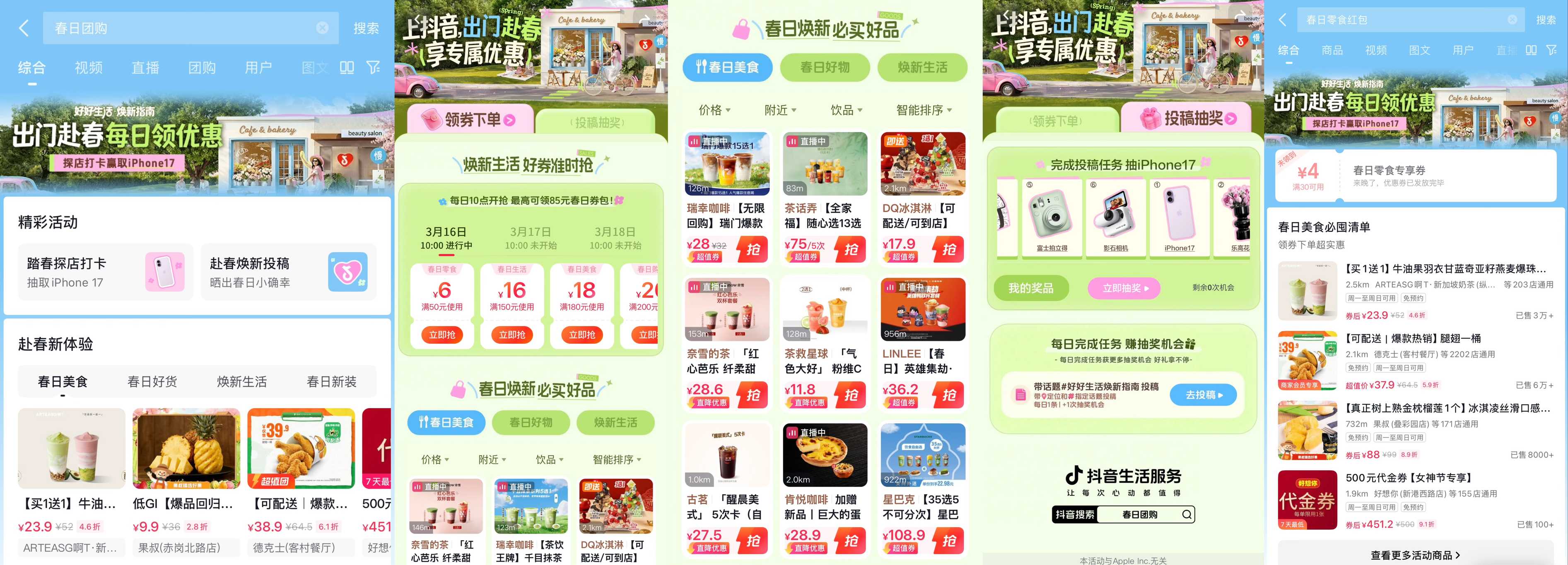 春风有期,让「好好糊口 春日焕新」成为春日潮水。联动美食、饮品、丽人、服饰、零售、糊口办事六大品类商家,享专属优惠” 也成为更多人的日常选择。
