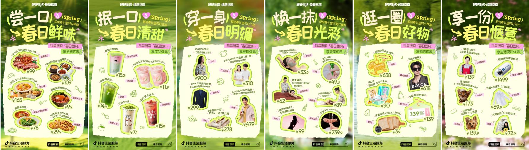 将吃春鲜、饮春茶、焕新颜值、穿搭春拆、备齐好物、惬意出逛六大春日场景,把春日的浪漫取治愈,推出「春日CP组合」,